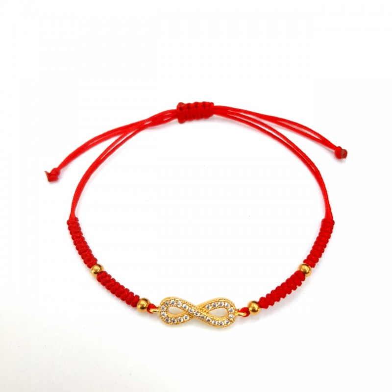 Detalles de pepitas y dije infinito en acero dorado con circones blancos