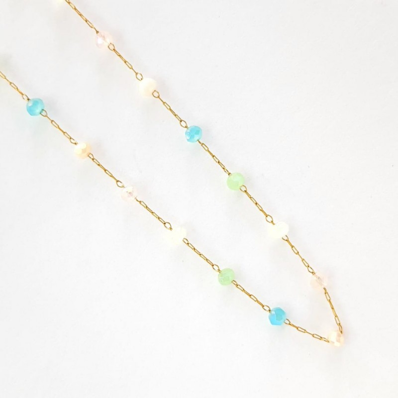 Collar de acero dorado con aplicaciones en piedra murano de tonalidad pastel