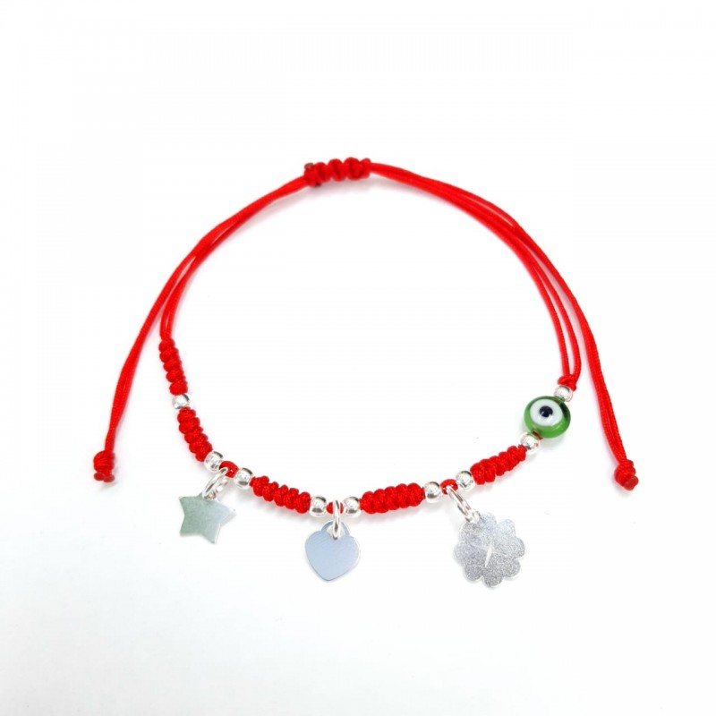 Aplicación de pepitas y 3 dijes de luna, corazón y trébol, además del ojo turco verde (éxito)