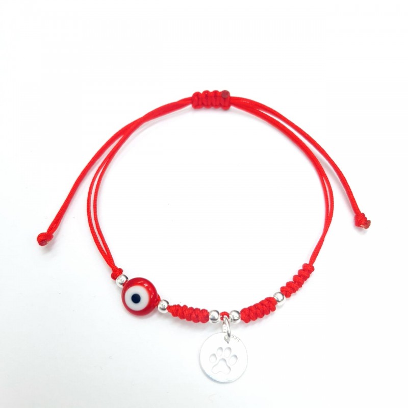 Aplicación de pepitas y dije con huella de perrito, además del ojo turco rojo (coraje)